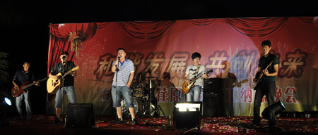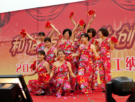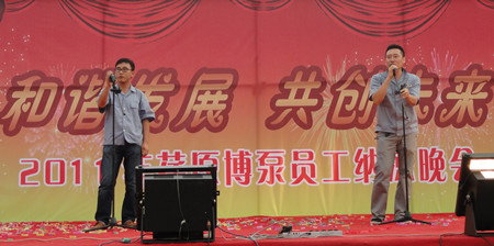 舞蹈《開門紅》寄托著荏原博泵員工對(duì)公司發(fā)展前景的美好期盼,展示了公司女職工的風(fēng)采。20多名復(fù)員軍人用一首《咱當(dāng)兵的人》抒發(fā)了他們保家衛(wèi)國、貢獻(xiàn)企業(yè)的豪情與壯志;研發(fā)部、技術(shù)部員工帶來的歌曲《跳起來》,展示了年輕人的青春與活力;質(zhì)量保證部員工在部長(zhǎng)岳東海帶領(lǐng)下,演唱了歌曲《相親相愛一家人》,演繹著荏原博泵大家庭的親情、友情。友情樂隊(duì)帶來的動(dòng)感十足的歌曲,更是將晚會(huì)的氣氛烘托到高潮。