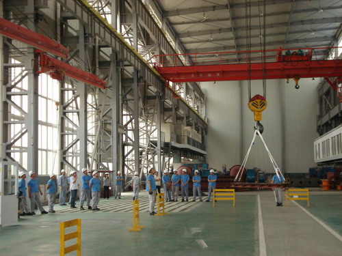 此次預(yù)演活動(dòng)的主要內(nèi)容是,吊車在運(yùn)行過程中突然停電后工作人員的應(yīng)變能力。演習(xí)開始了,首先,停電后吊車工先把開關(guān)手柄放置到“零位”并監(jiān)控總電源。同時(shí),生產(chǎn)部裝配班、物流班部分員工在各自科長的帶領(lǐng)下在吊運(yùn)物件下設(shè)護(hù)欄并監(jiān)護(hù),以防有人誤進(jìn)危險(xiǎn)區(qū)域。其次,生產(chǎn)技術(shù)部維修人員按照安全操作規(guī)程,爬上吊車走臺(tái),盤車移動(dòng)到合適位置然后慢慢拉、合抱閘把物件送回地面。最后,解除危險(xiǎn)。