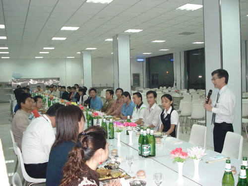 晚宴在輕快的音樂聲中舉行,總經(jīng)理孫龍平因公務無法前來,專門打電話表達了對員工的節(jié)日問候。公司董事長井上先生、常務副總鈴木先生先后致辭,表達了對員工節(jié)日的祝賀,同時談到了八月十五這一天,在日本也有全家人賞月的傳統(tǒng),故鄉(xiāng)的明月是所有游子魂牽夢繞的情。自助式晚宴進行得自由而輕松,員工之間頻頻舉杯,共敘友誼,并無多愁善感;人力資源部姜部長帶頭向員工一一祝酒,對員工的鼓勵溢于言表,整個餐廳觥籌交錯,其樂融融。