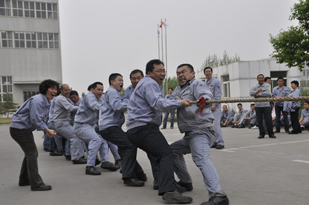 新聞中心為慶祝五?一勞動(dòng)節(jié),公司工會(huì)舉辦“第五屆員工拔河比賽”。4月30日下午,在辦公樓前200多名員工參加的拔河比賽正緊張進(jìn)行。參賽隊(duì)伍共有八支男隊(duì)、四支女隊(duì)。經(jīng)過緊張的角逐,焊接物流隊(duì)以絕對(duì)的優(yōu)勢(shì)力拔頭籌獲得男子冠軍,生產(chǎn)裝配隊(duì)獲得男子亞軍;生產(chǎn)部女隊(duì)獲女子冠軍。